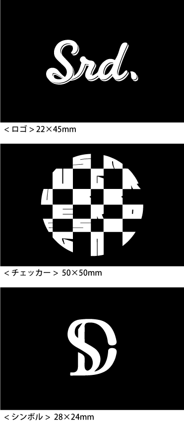 SRDウェットスーツのプリントロゴマークデザインは3種類の中からお選びいただけます。フルオーダーの際には撮影サンプル(見本画像)以外の場所にもプリント可能です。ご希望の場合はオーダーフォームの備考欄よりお申しつけください。ただし縫い目をまたぐような入れ方は不可能な場合がございます。